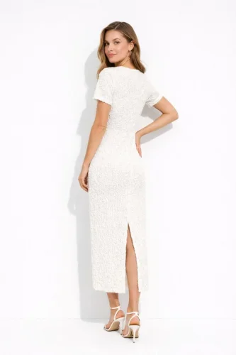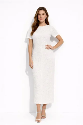 • Beyaz Kısa Kollu Arkası Yırtmaçlı Uzun Elbise İç Göstermeyen Askılı Mini Elbiseli Beyaz