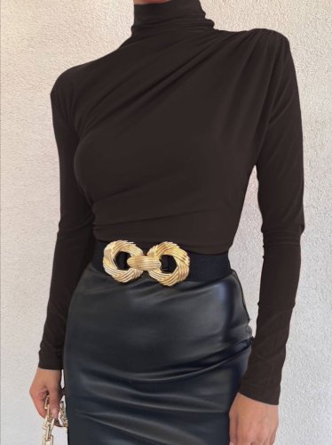 Yarım Boğaz Büzgülü Sandy Bluz Kahve